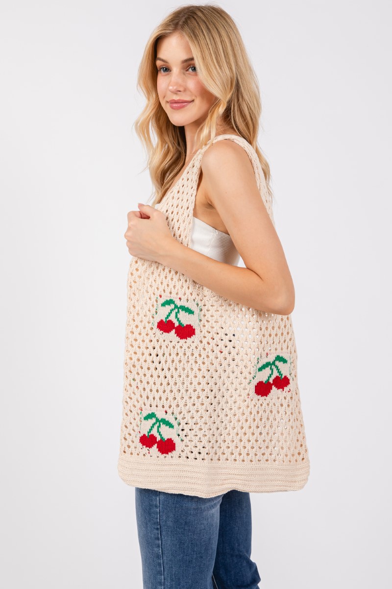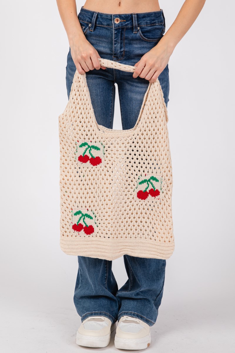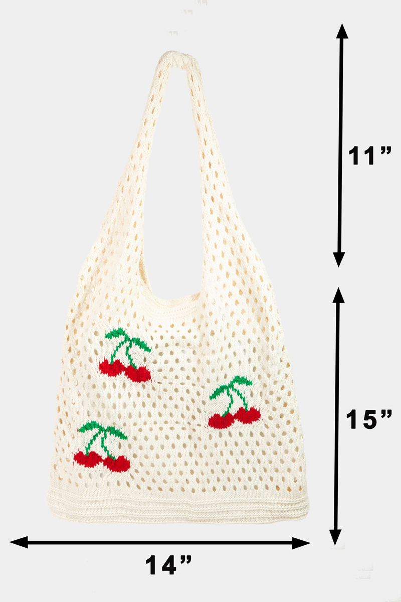 - This shoulder bag displays a fashionable cherry print net style. Experience a subtle blend of modernity and classic charm as this shoulder bag effortlessly adorns your ensemble.