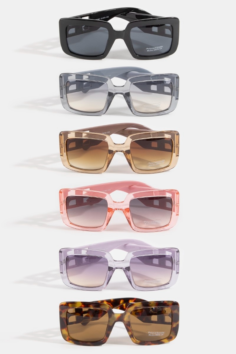 - This set of sunglasses introduces a stunning chunky square frame sunglasses style. Step into a world of refined taste as this set of sunglasses effortlessly refines the details of your outfit.
