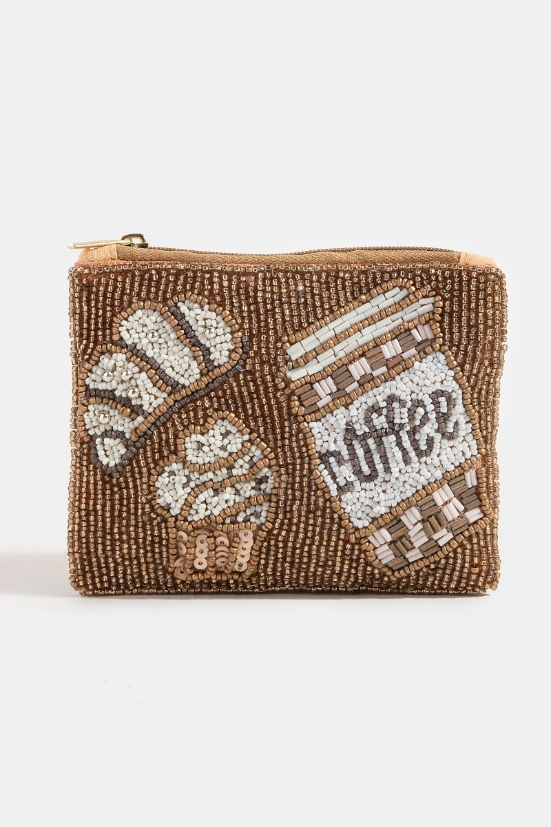 • This coin purse features a fashionable coffee and pastries seed beaded style. Indulge in the allure of exquisite craftsmanship as this coin purse effortlessly adds a touch of luxury to your attire.