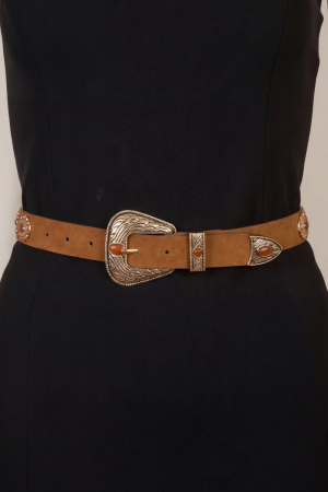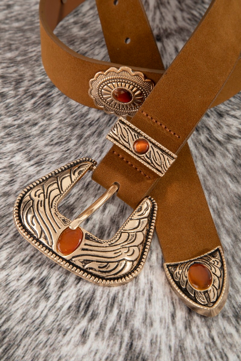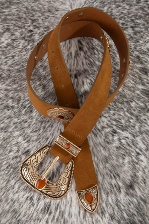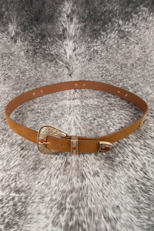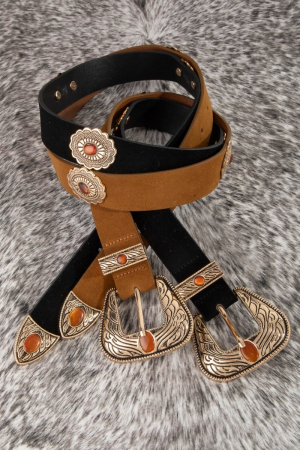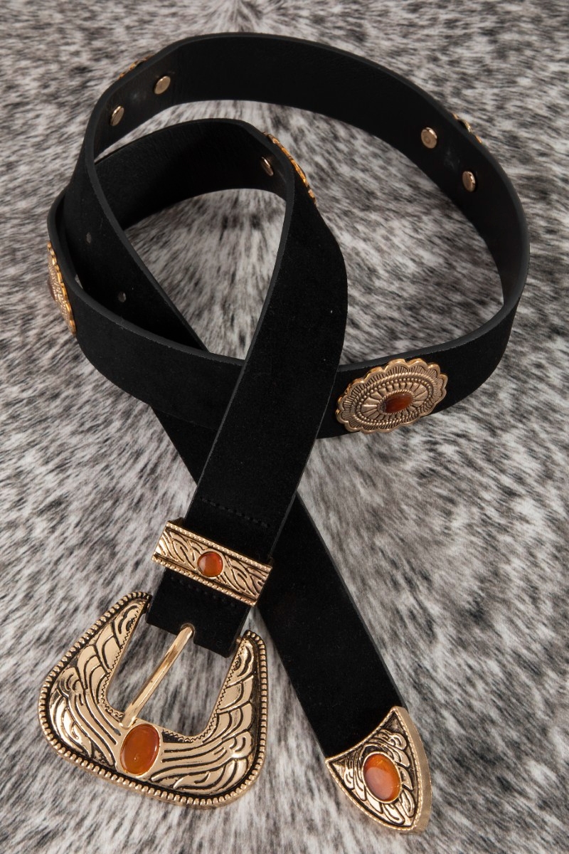 - This leather belt showcases a unique concho disc vegan style. Celebrate individuality with this leather belt that effortlessly expresses your unique sense of style.