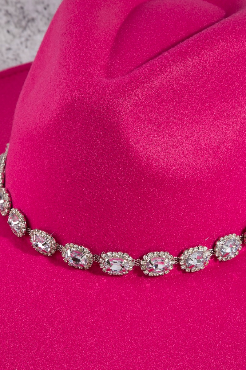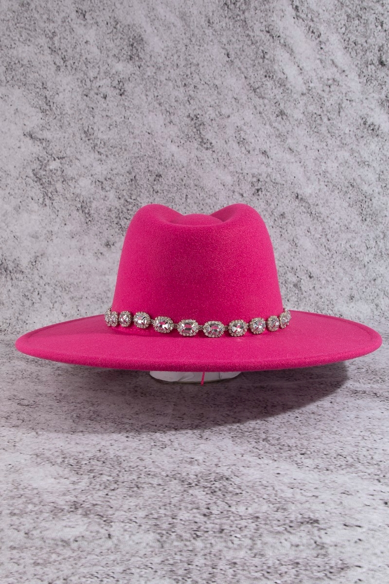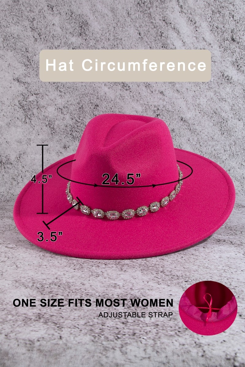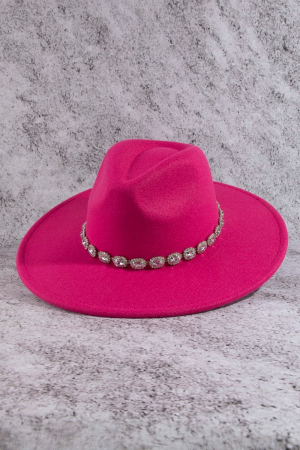 - This fedora hat showcases a unique crystal rhinestone strap style. Embark on a journey of sartorial refinement as this fedora hat effortlessly complements your fashion sense.