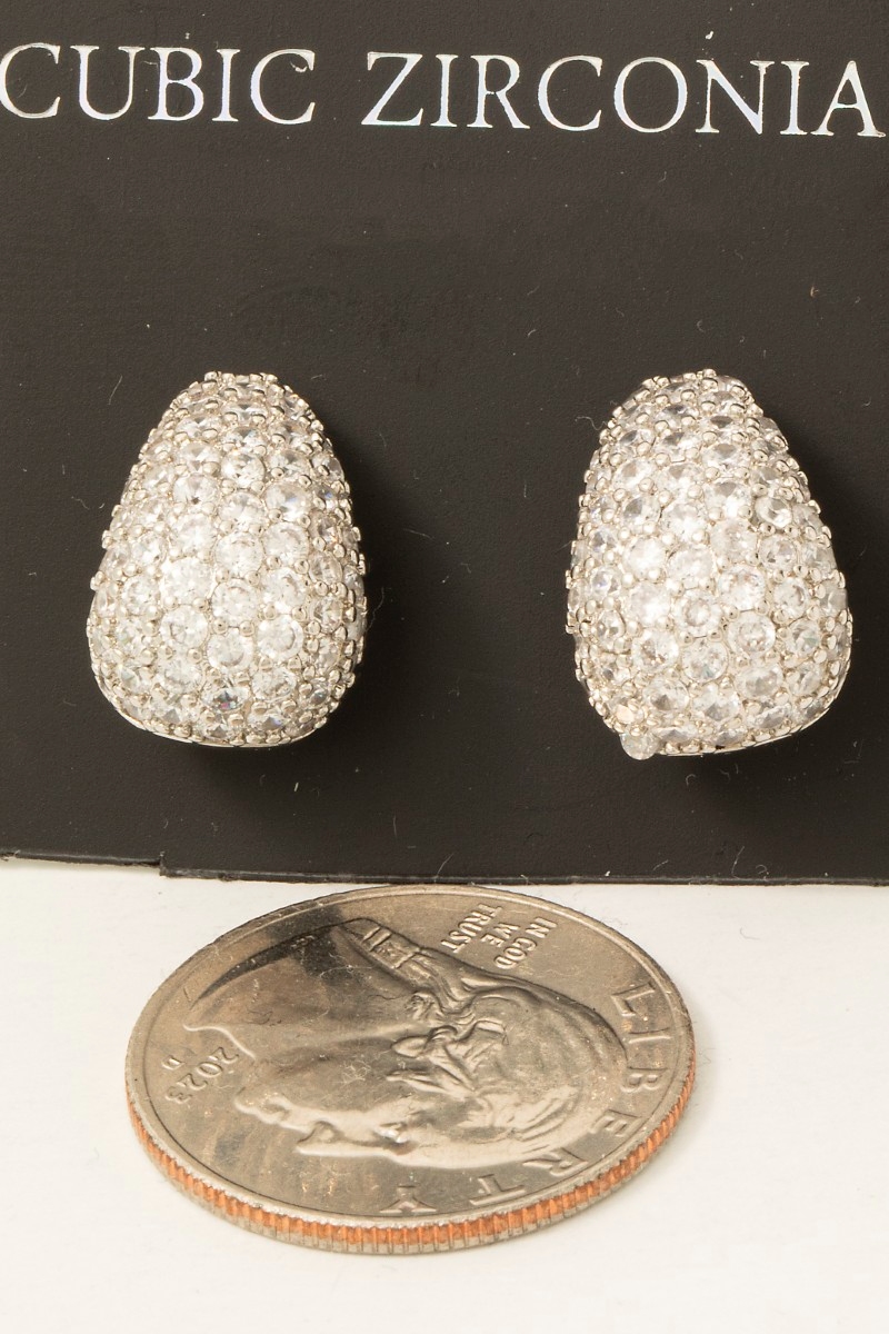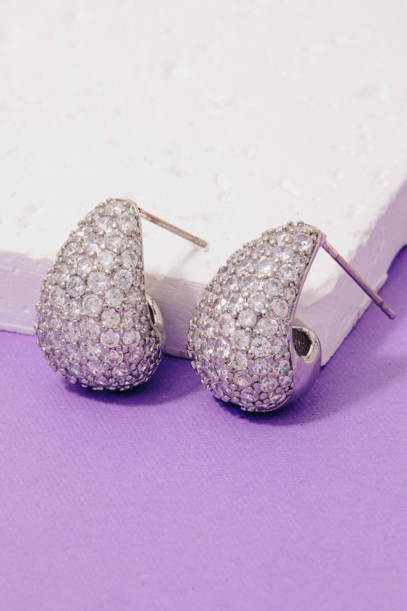 • This pair of hoop earrings introduces a stunning cubic zirconia pave teardrop style. Redefine your look effortlessly with this standout, on-trend piece.
