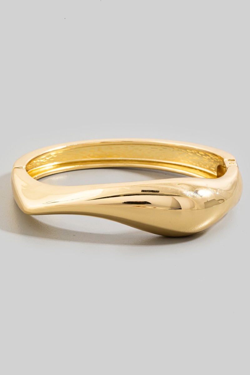 • This bangle bracelet introduces a stunning curved sculptural metallic style. Delight in the intricate details that make this bangle bracelet an essential element in expressing your fashion identity.