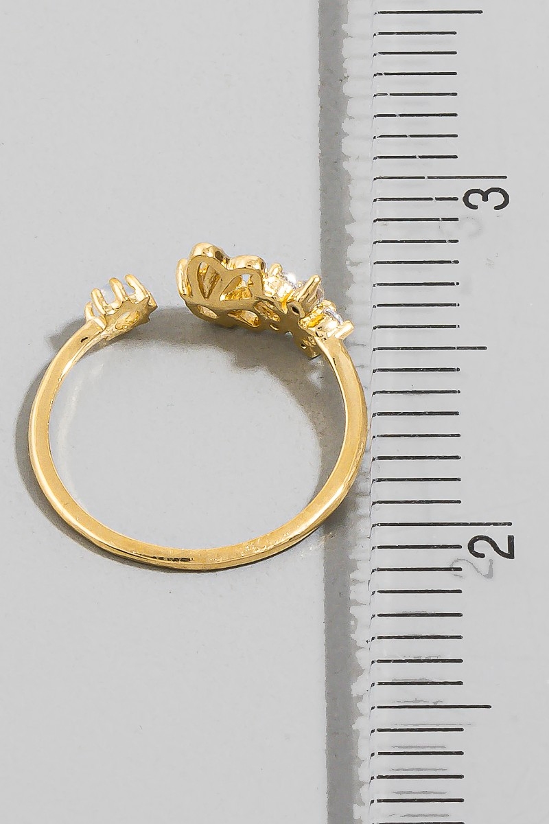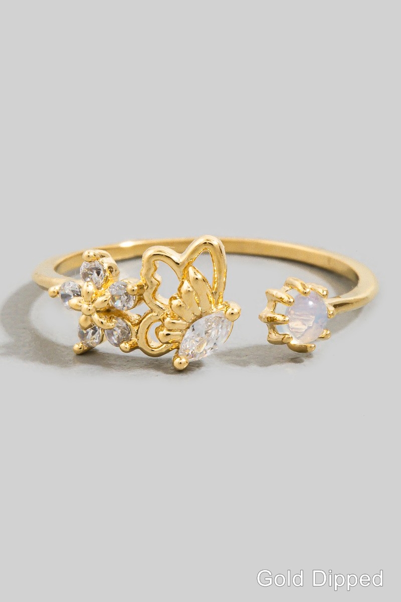 - This ring showcases a timeless cz butterfly flower open band style. Experience a burst of creativity in accessorizing as this piece effortlessly sets the tone for your unique style.