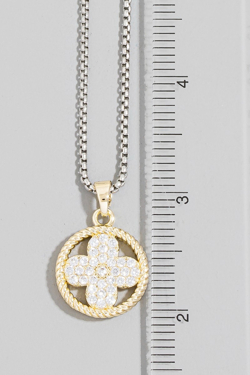 - This pendant necklace showcases a timeless cz clover rope circle style. Revel in the intricate design that effortlessly distinguishes this pendant necklace, making it a statement piece.