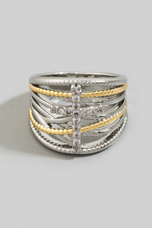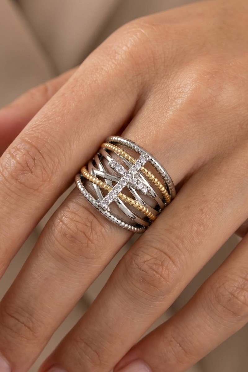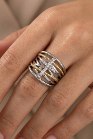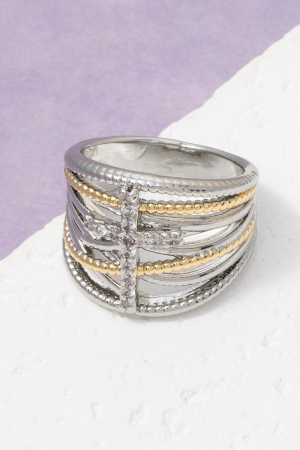 - This ring adds a modern cz cross bar two-tone wide multi-band style. Immerse yourself in the details of design, as this ring effortlessly becomes a conversation starter.
