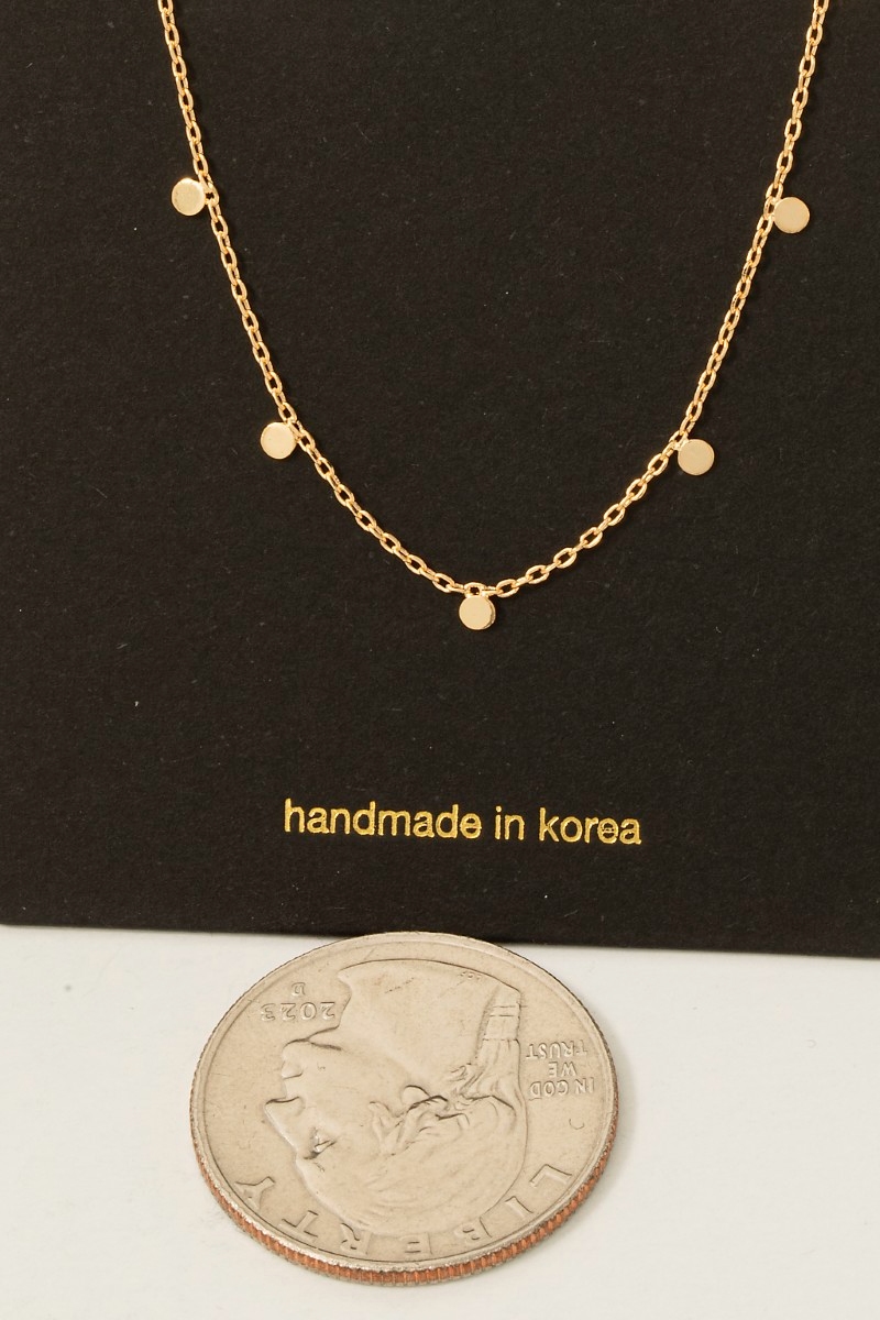 - This necklace displays a fashionable dainty mini disc station style. Unveil modern elegance with this subtly intricate necklace.