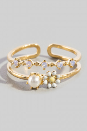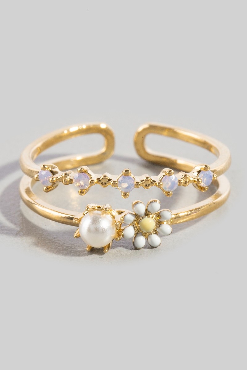 - This ring showcases a unique double band opal flower style. Celebrate individuality with this ring that effortlessly expresses your unique sense of style.