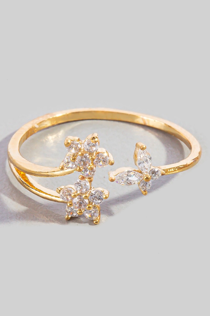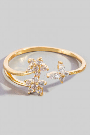 - This ring introduces a unique double cubic zirconia flower and butterfly open band style. Indulge in the artistry of accessorizing with this unique piece.