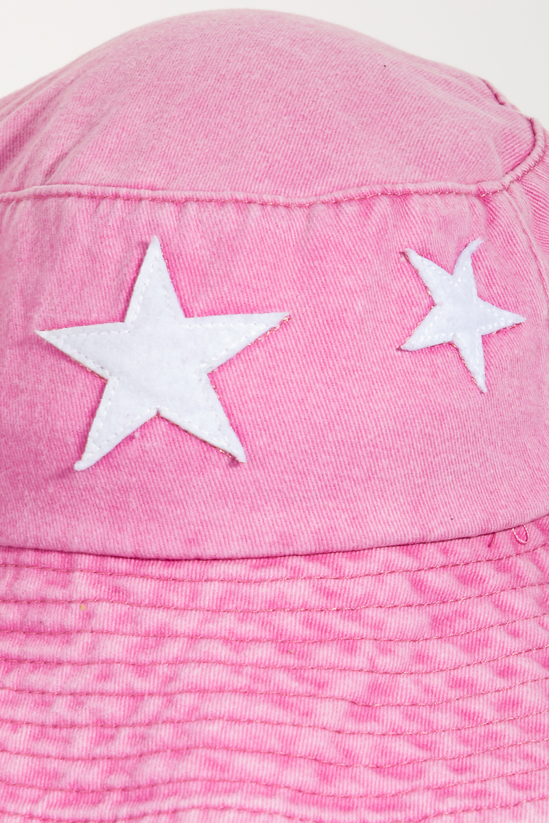 - This bucket hat features a fashionable double star denim chin strap style. Discover the perfect balance of functionality and fashion.