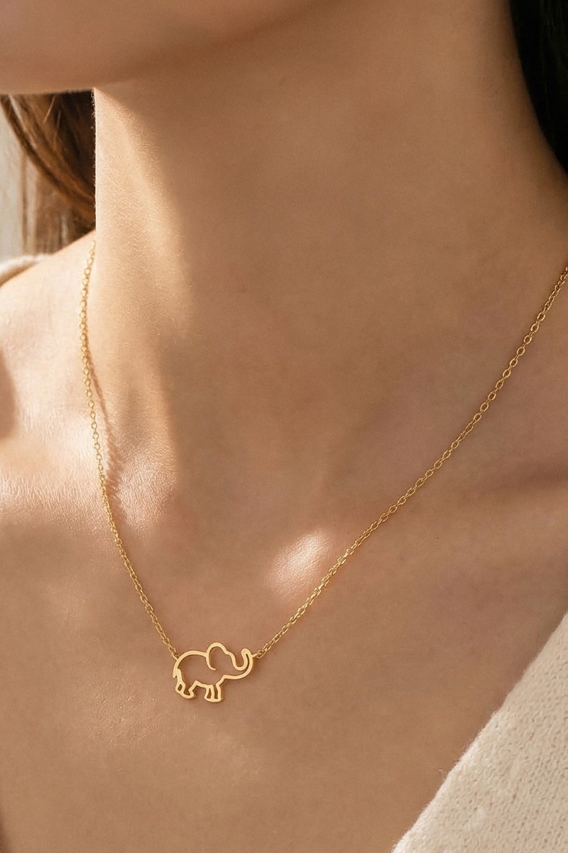 • This trending necklace adds a modern elephant cutout pendant necklace style. Celebrate individuality with this trending necklace that effortlessly expresses your unique sense of style.