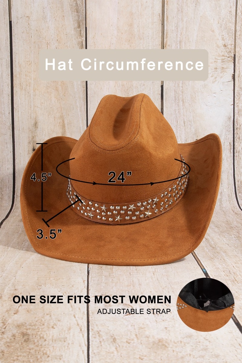 - This cowboy hat displays a fashionable embroidered star studded style. Unveil modern elegance with this subtly intricate cowboy hat.