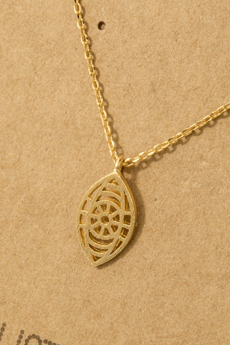 - This trending necklace brings a unique evil eye cut out pendant necklace style. Experience a subtle blend of modernity and classic charm as this trending necklace effortlessly adorns your ensemble.