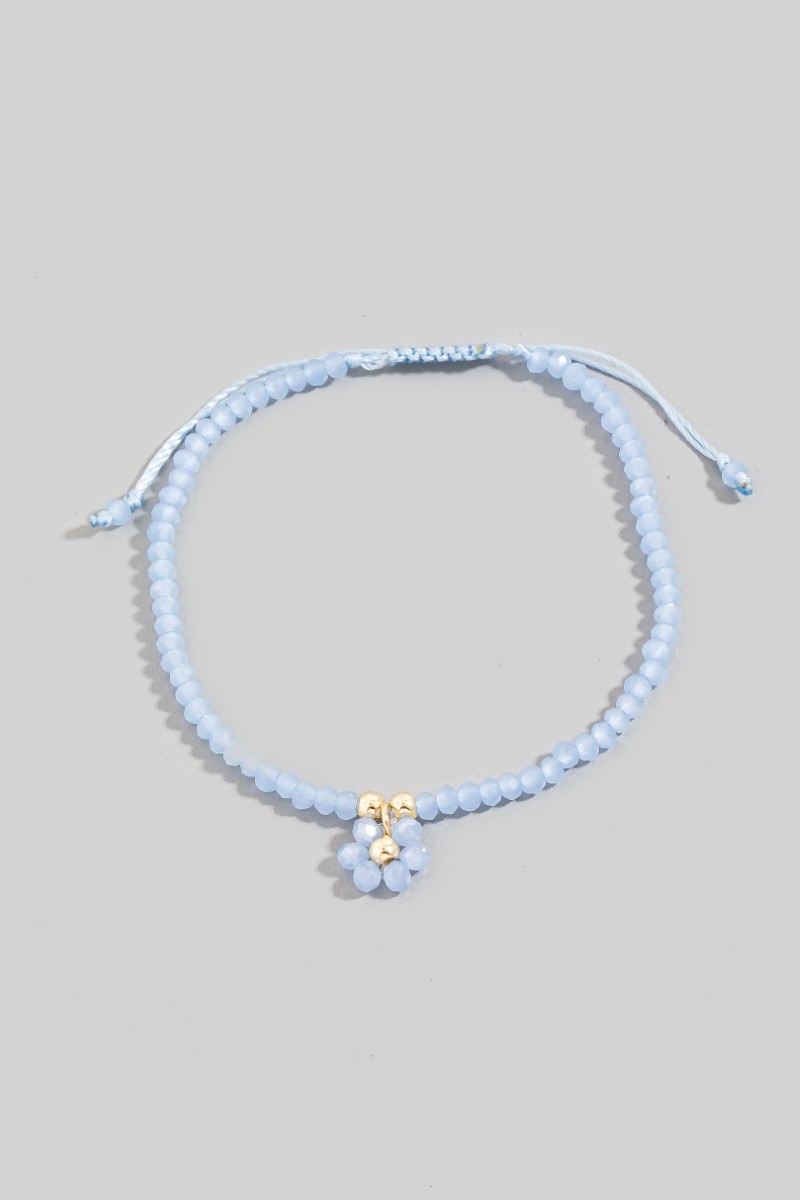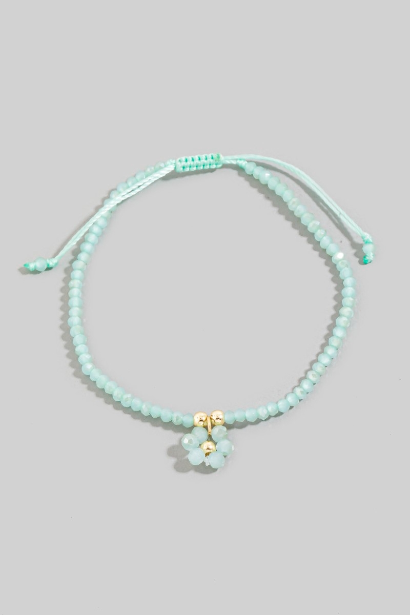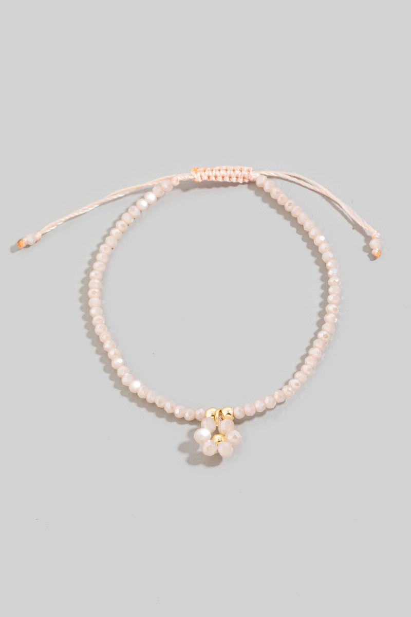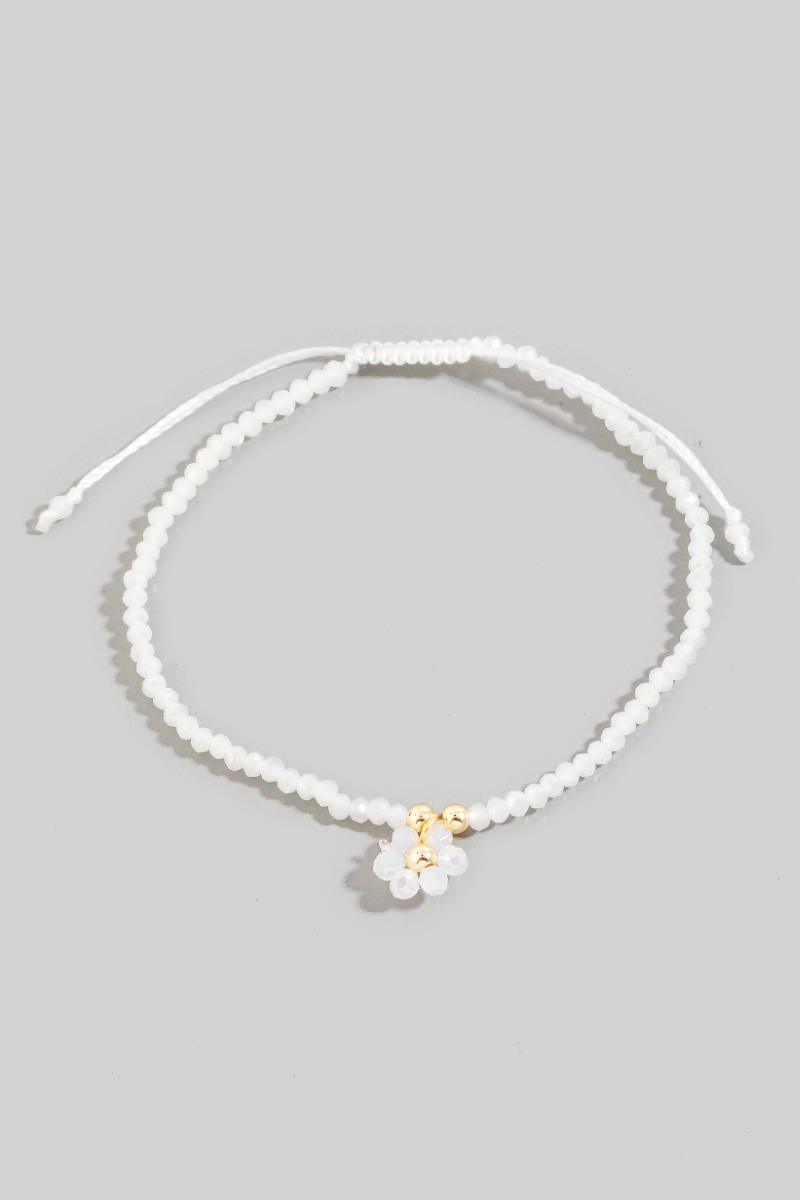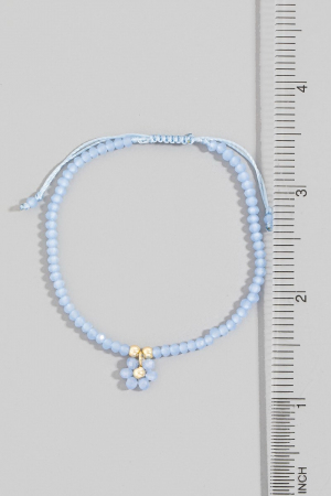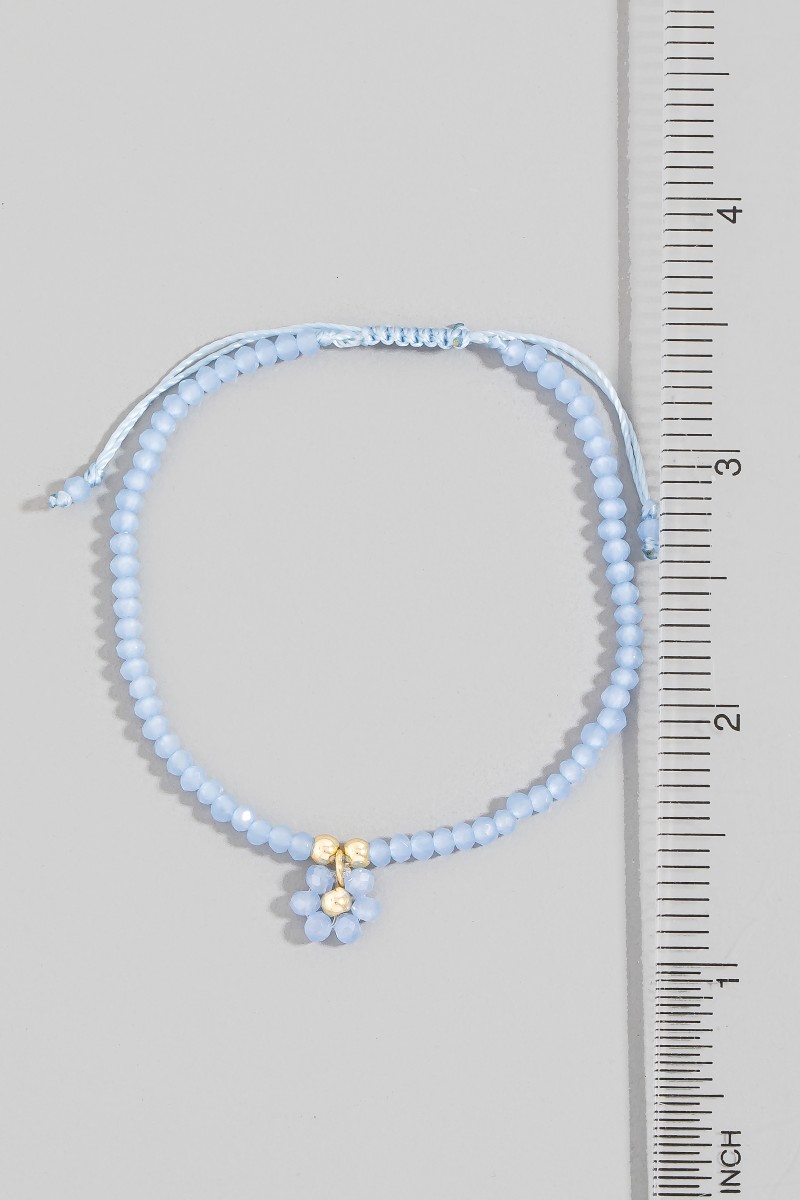- This bracelet showcases a unique faceted beaded flower charm adjustable cord style. Witness the perfect fusion of style and functionality as this bracelet effortlessly complements your lifestyle.