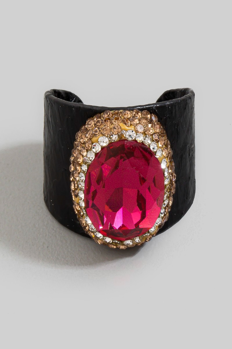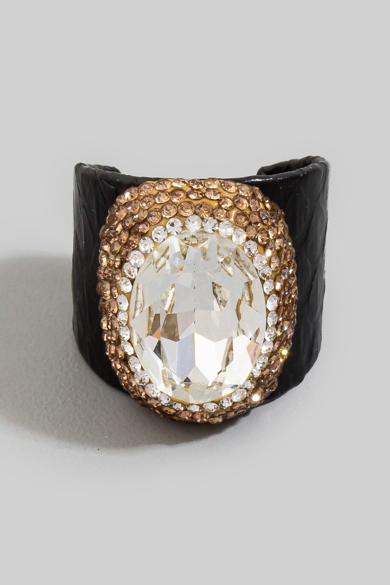 - This ring introduces a stunning faceted crystal stone pave statement style. Redefine your look effortlessly with this standout, on-trend piece.