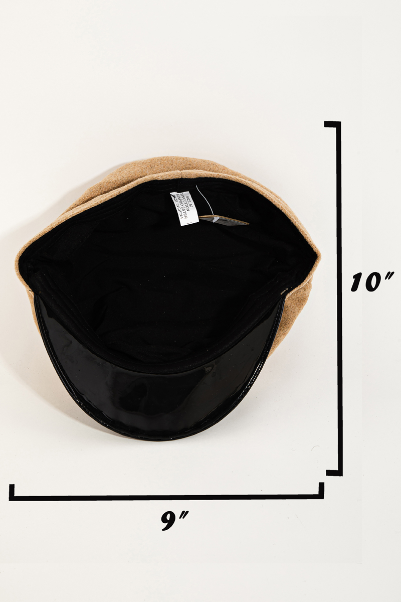 - This cap displays a vibrant faux leather trim cabbie style. Immerse yourself in the world of understated glamour as this cap effortlessly exudes timeless appeal.