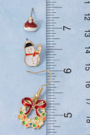 • SNOWMAN STUDS, SANTA HAT STUDS, BOW WRAITH DANGLE EARRINGS