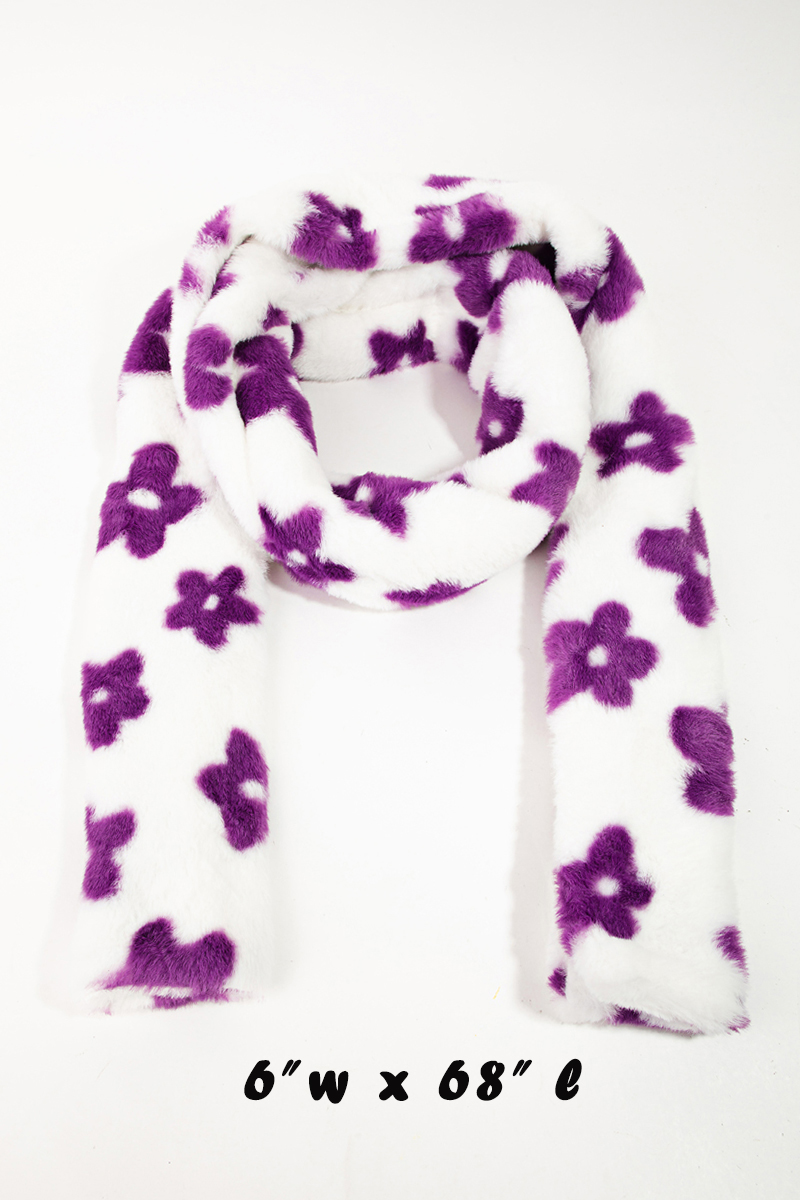 - This scarf features a fashionable flower print fur style. Discover the perfect balance of functionality and fashion.