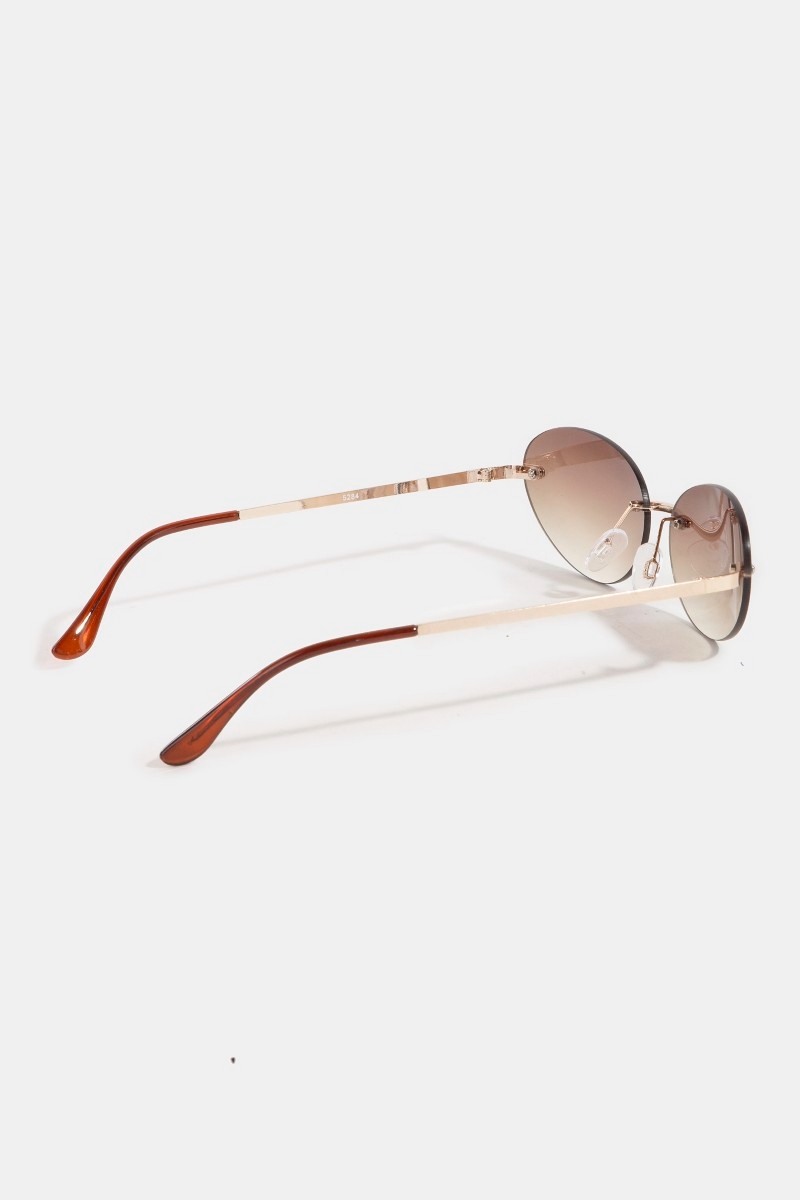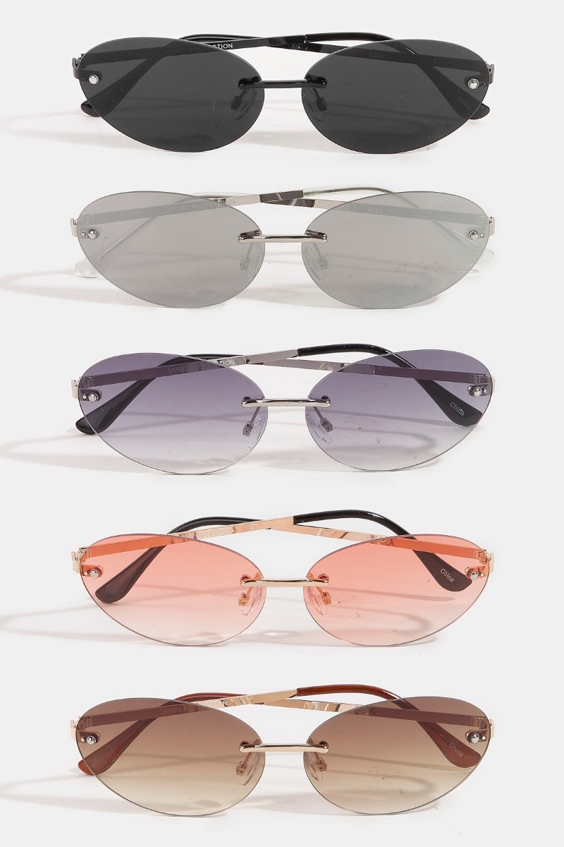 - This set of sunglasses showcases a timeless frameless gradient oval lens sunglasses set style. Indulge in the allure of exquisite craftsmanship as this set of sunglasses effortlessly adds a touch of luxury to your attire.