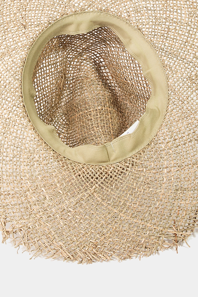 • This sun hat features a fashionable fringe edge straw braided western fedora hat style. Indulge in the artistry of accessorizing with this unique piece.