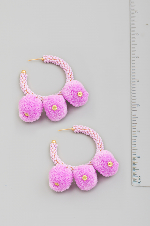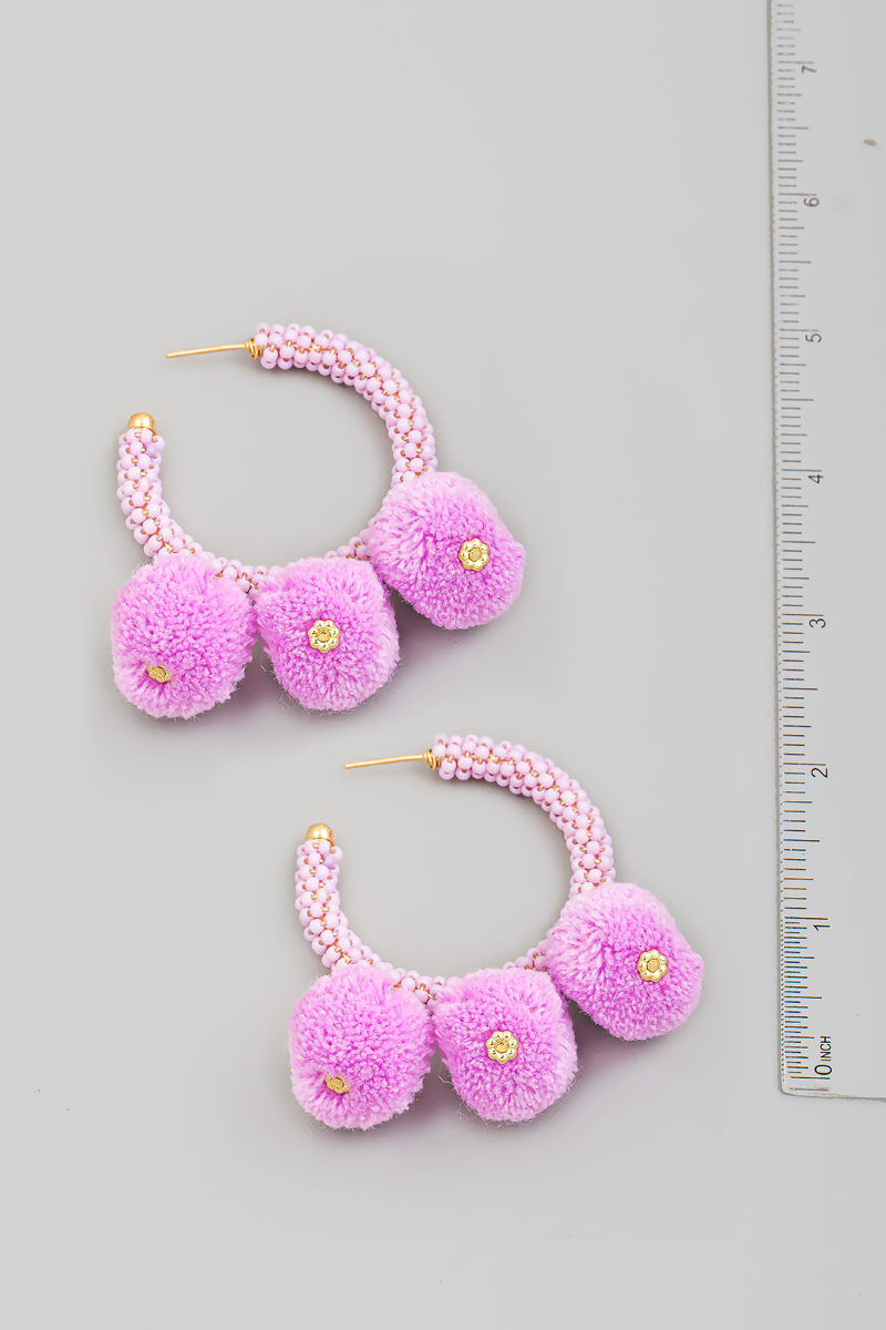 - This is the perfect accessory for any occasion pair of hoop earrings carries a charming fuzzy beaded hoop earrings design. This item is perfect for adding some color and vibrancy to any outfit. Available in BLK, LAV, NMUL, TQ and WHT.