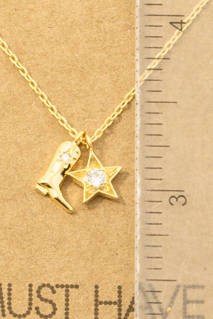 - This trending necklace introduces a unique gold dipped cowboy boots star pendant necklace style. Step into a world of refined taste as this trending necklace effortlessly refines the details of your outfit.