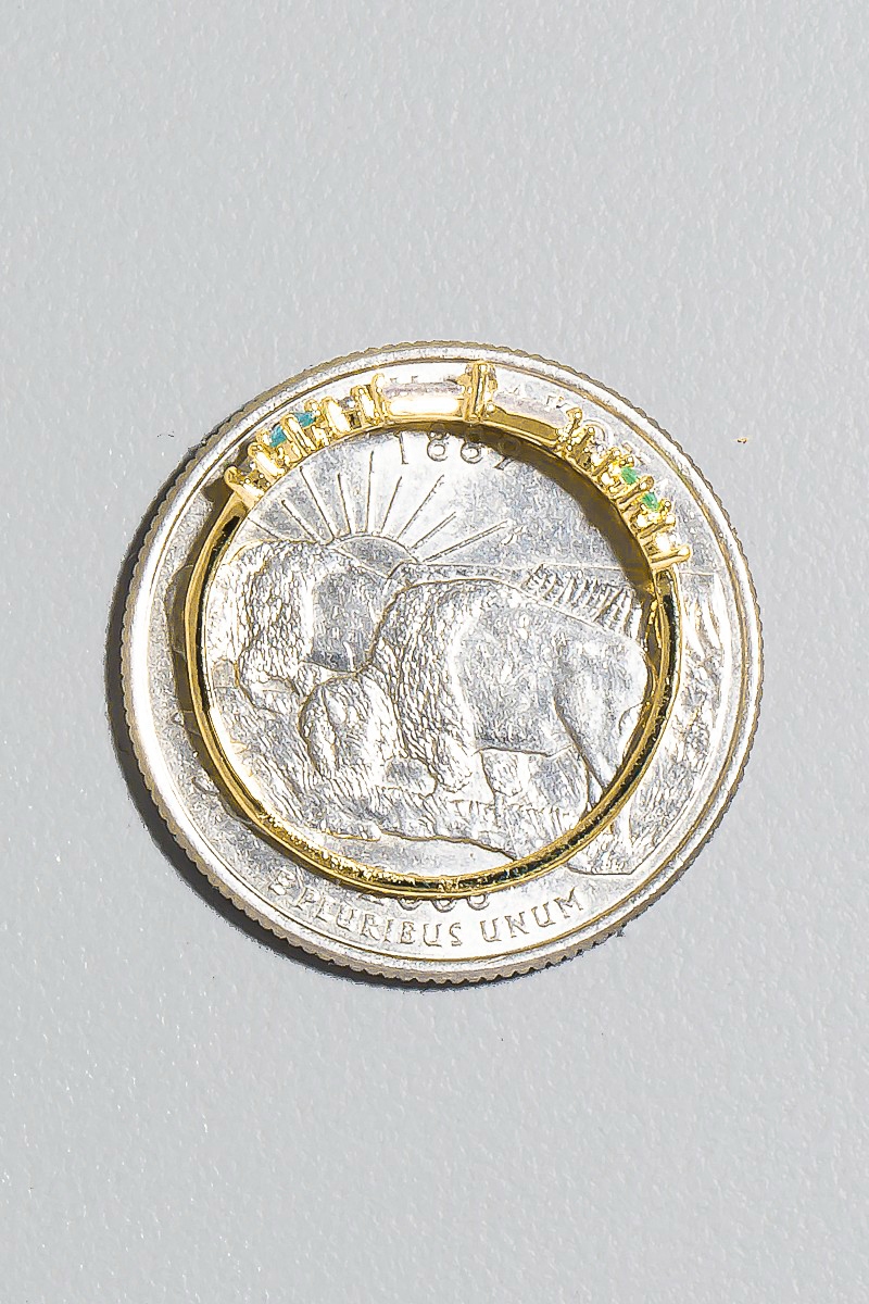 - This ring displays a vibrant gold dipped cubic zirconia baguette bow band style. Experience a subtle blend of modernity and classic charm as this ring effortlessly adorns your ensemble.