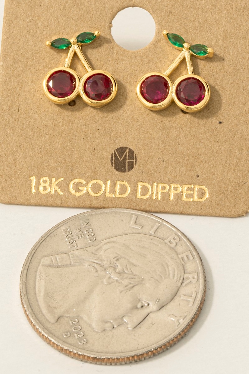 - This pair of stud earrings brings a unique gold dipped cubic zirconia cherry style. Savor the craftsmanship that goes beyond the ordinary, as this pair of stud earrings effortlessly captivates attention.