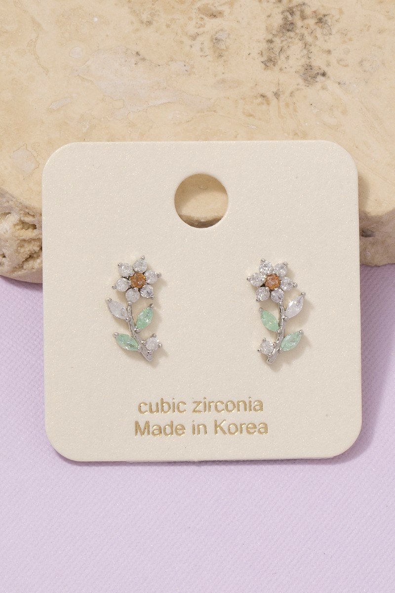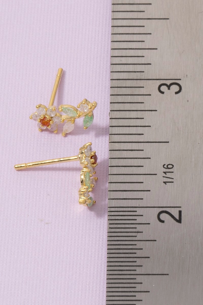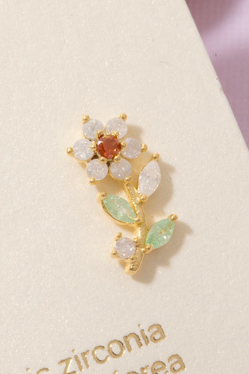 - This pair of stud earrings introduces a unique gold dipped cubic zirconia flower style. Experience a subtle blend of modernity and classic charm as this pair of stud earrings effortlessly adorns your ensemble.