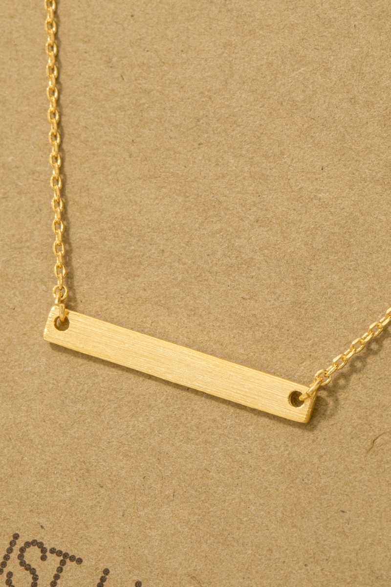 • This necklace displays a vibrant gold dipped dainty bar pendant style. Unveil a new dimension of sophistication as this necklace effortlessly enhances the elegance of your ensemble.