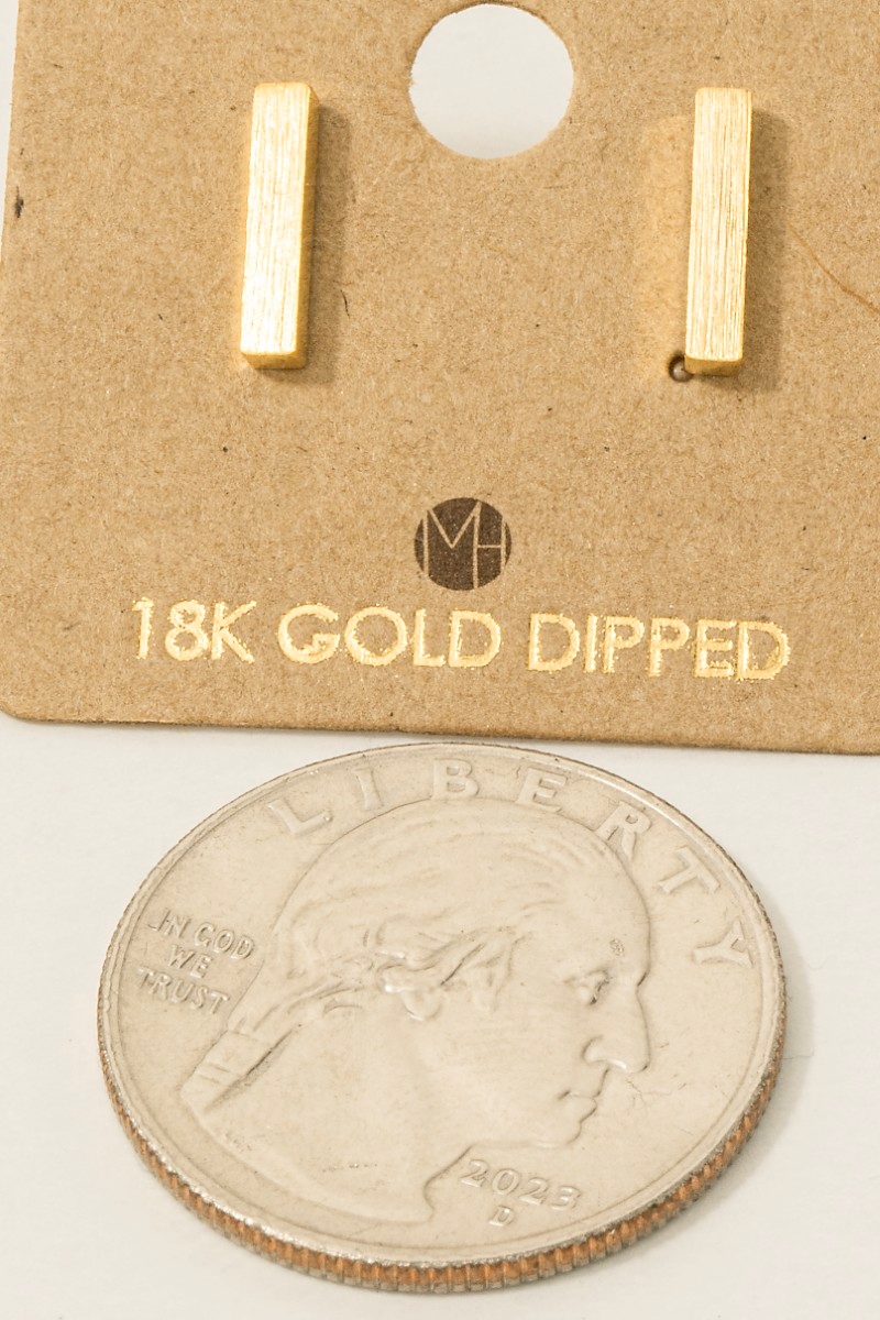 - This trending pair of earrings adds a modern gold dipped dainty mini bar stud earrings style. Immerse yourself in the world of understated glamour as this trending pair of earrings effortlessly exudes timeless appeal.