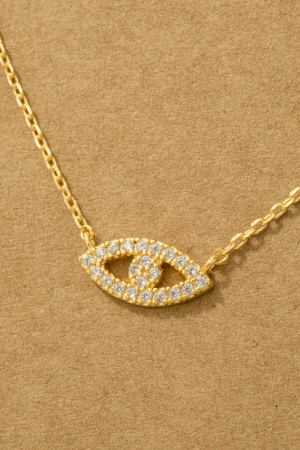 - This trending necklace brings a luxurious gold dipped evil eye jewel pendant necklace style. Experience the joy of accessorizing with this piece that effortlessly combines versatility and charm.
