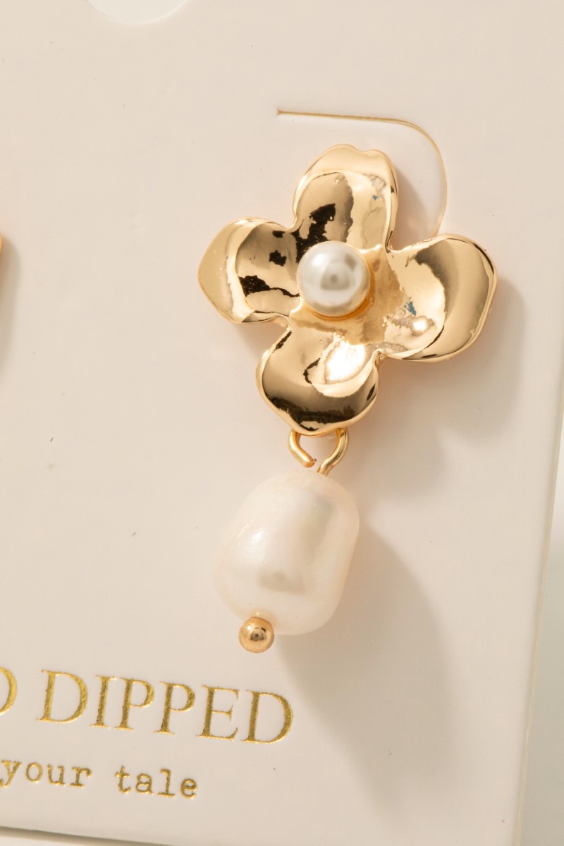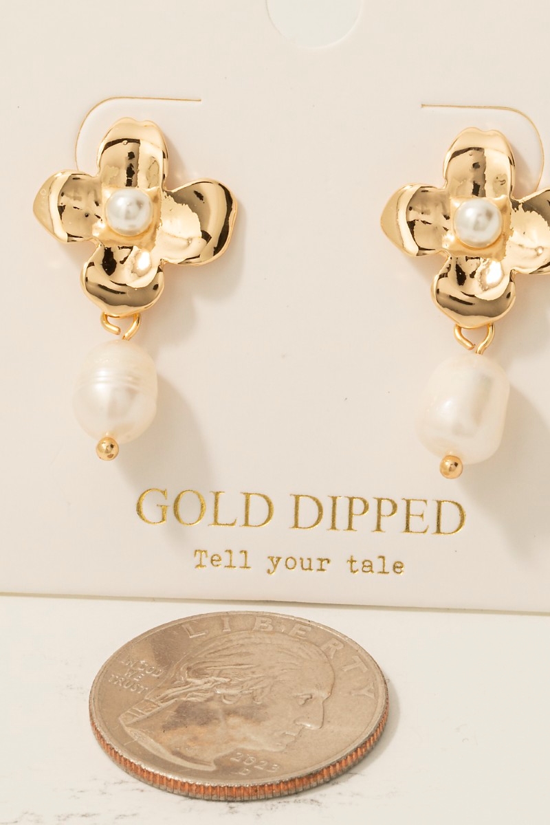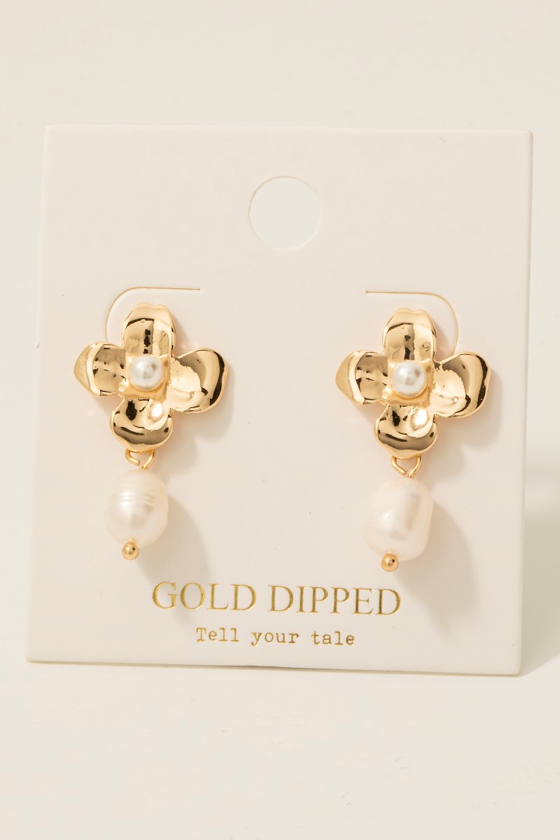 - This pair of stud earrings brings a stunning gold dipped flower and pearl charm style. Celebrate individuality with this pair of stud earrings that effortlessly expresses your unique sense of style.