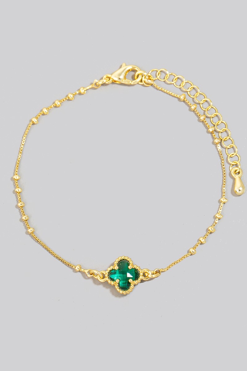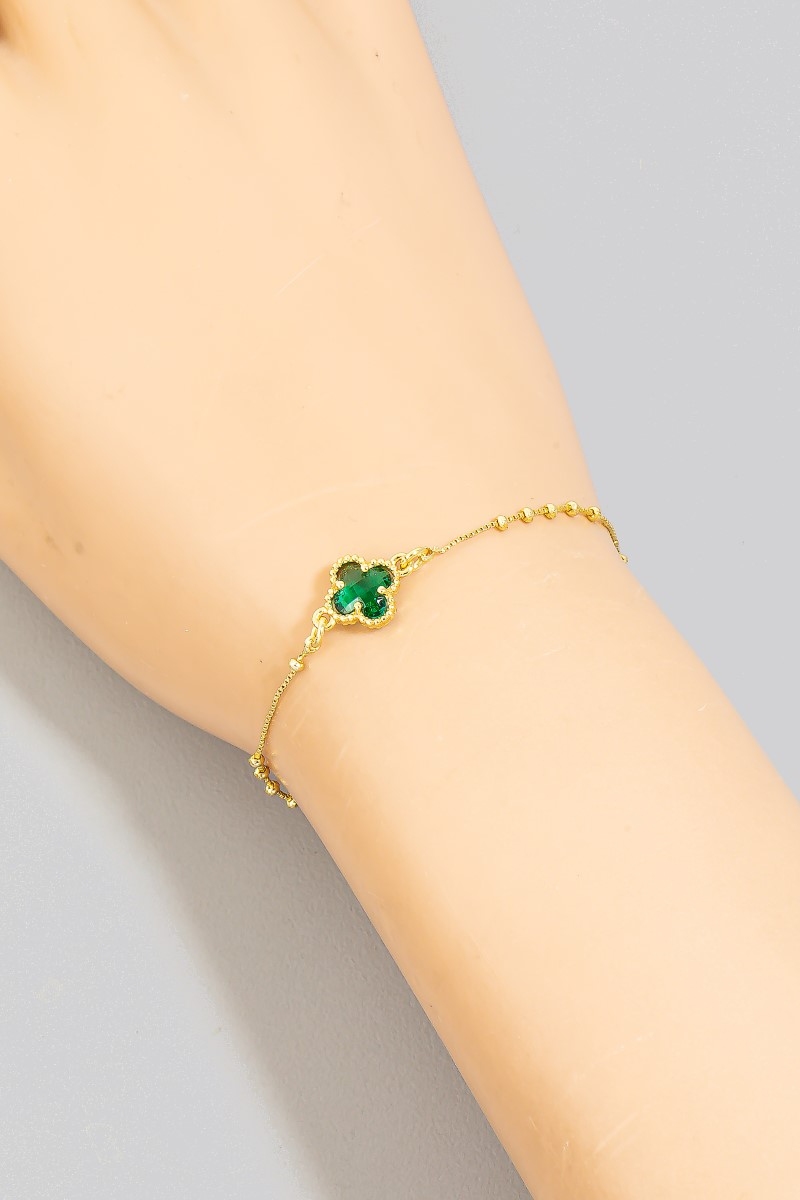 - This chain bracelet showcases a timeless gold dipped green cz clover charm style. Immerse yourself in the details of design, as this chain bracelet effortlessly becomes a conversation starter.