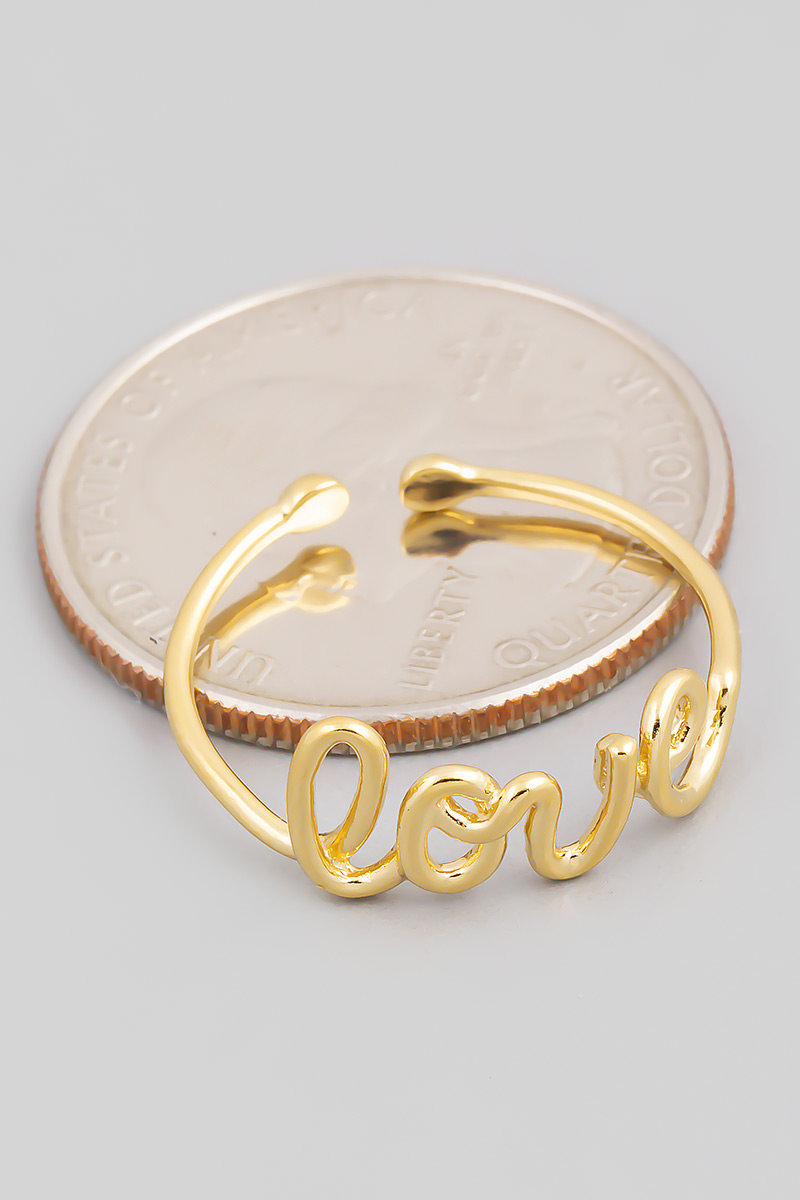 - This ring introduces a unique gold dipped handwritten love style. Step into a world of refined taste as this ring effortlessly refines the details of your outfit.