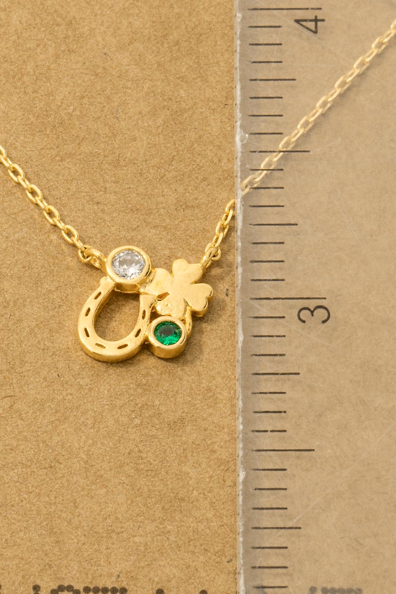 - This trending necklace features a fashionable gold dipped horse shoe clover and cubic zirconia pendant chain necklace style. Immerse yourself in fashion finesse with this statement trending necklace.