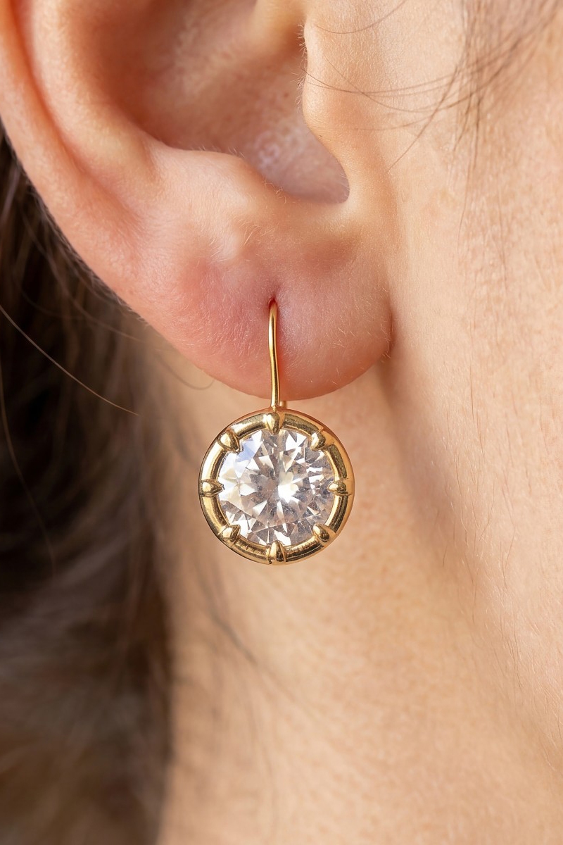 - This pair of dangle earrings brings a stunning gold dipped large circle cubic zirconia style. Savor the allure of detailed craftsmanship in this exquisite pair of dangle earrings.