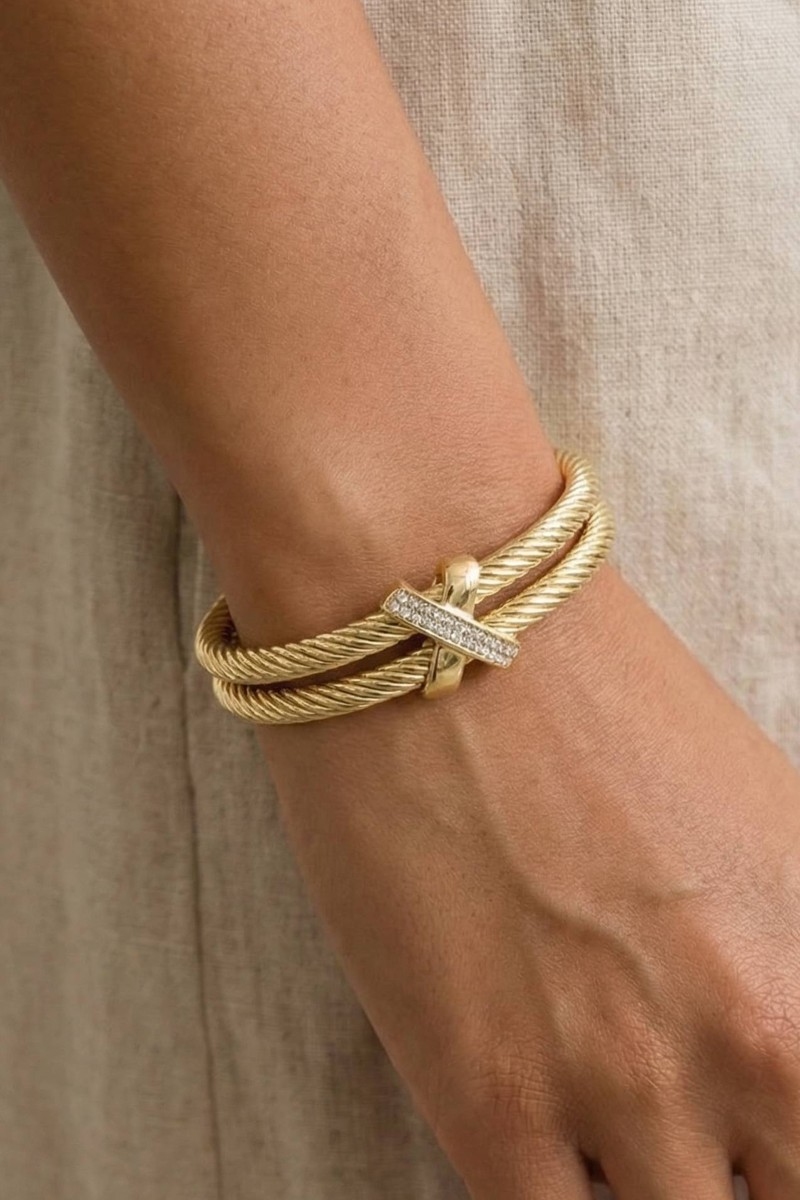 - This cuff bracelet brings a stunning gold dipped layered two tone cubic zirconia rope style. Witness the transformative power of accessories as this piece effortlessly redefines your fashion narrative.