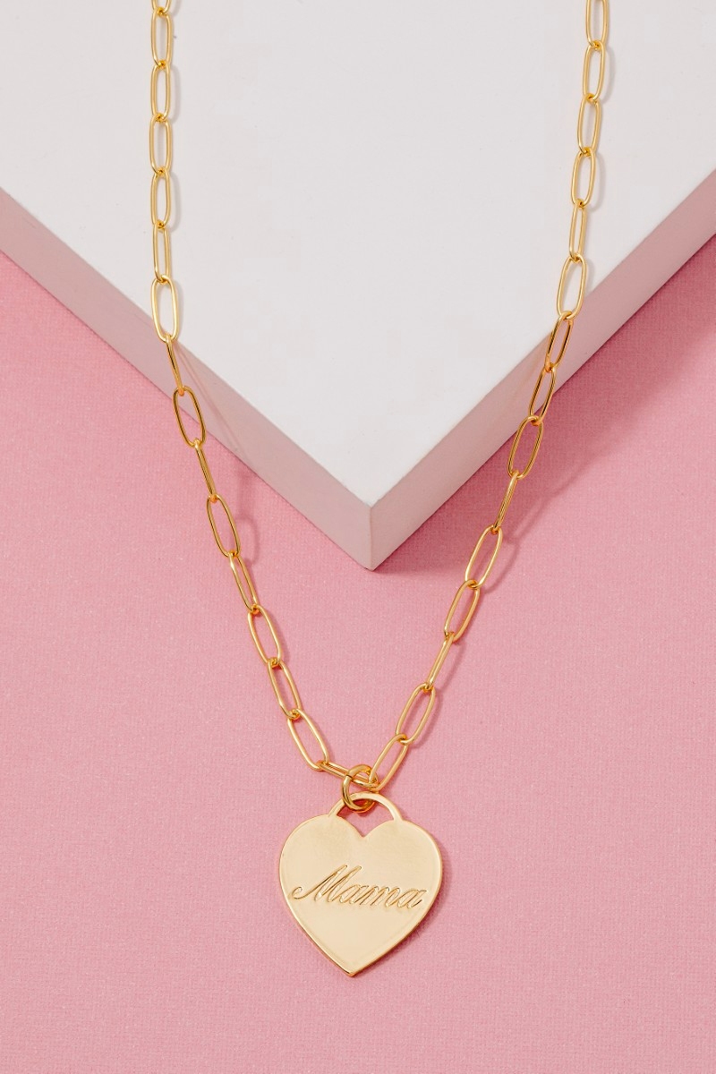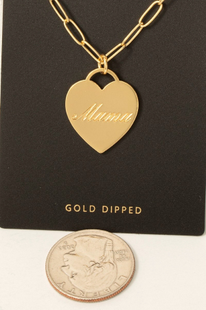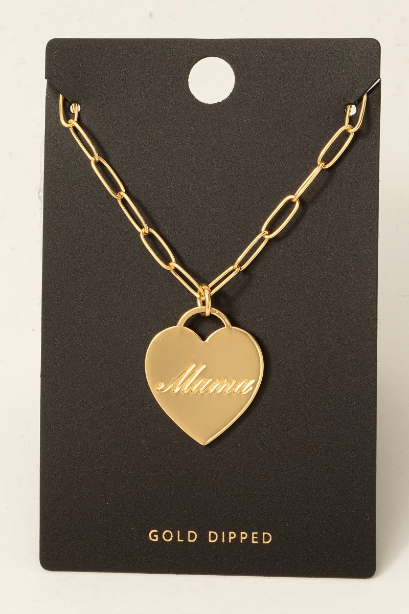 - This necklace brings a unique gold dipped mama heart pendant style. Celebrate the art of accessorizing with this piece that effortlessly encapsulates modern trends.