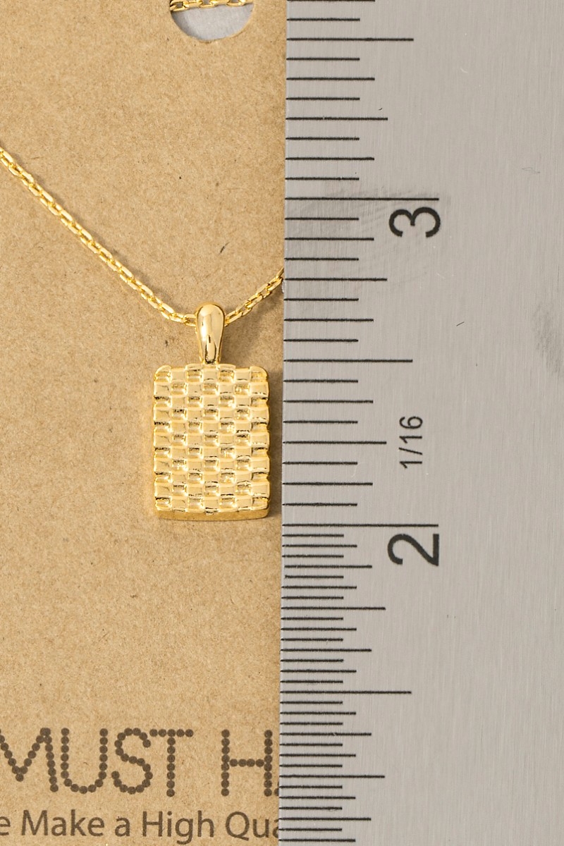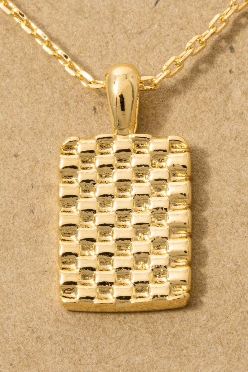- This necklace introduces a unique gold dipped mesh rectangle pendant style. Elevate your ensemble with this chic, timeless necklace.