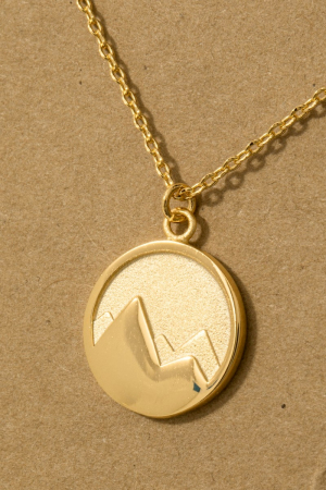 - This trending necklace features a fashionable gold dipped mountain coin pendant necklace style. Redefine your look effortlessly with this standout, on-trend piece.