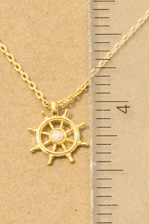 - This trending necklace features a fashionable gold dipped opal stud ship wheel pendant necklace style. Celebrate the art of accessorizing with this piece that effortlessly encapsulates modern trends.