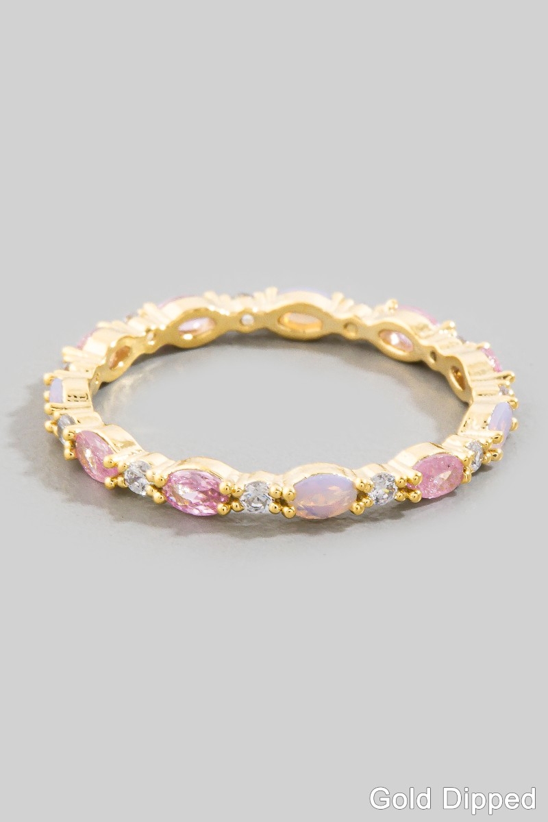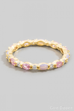 - This ring displays a vibrant gold dipped oval cubic zirconia eternity band style. Savor the allure of detailed craftsmanship in this exquisite ring.