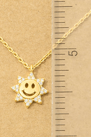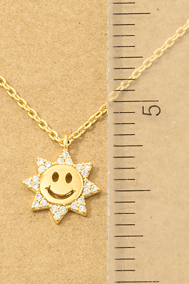 - This trending necklace displays a fashionable gold dipped pave cubic zirconia smiley sun pendant necklace style. Experience a subtle blend of modernity and classic charm as this trending necklace effortlessly adorns your ensemble.