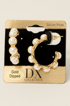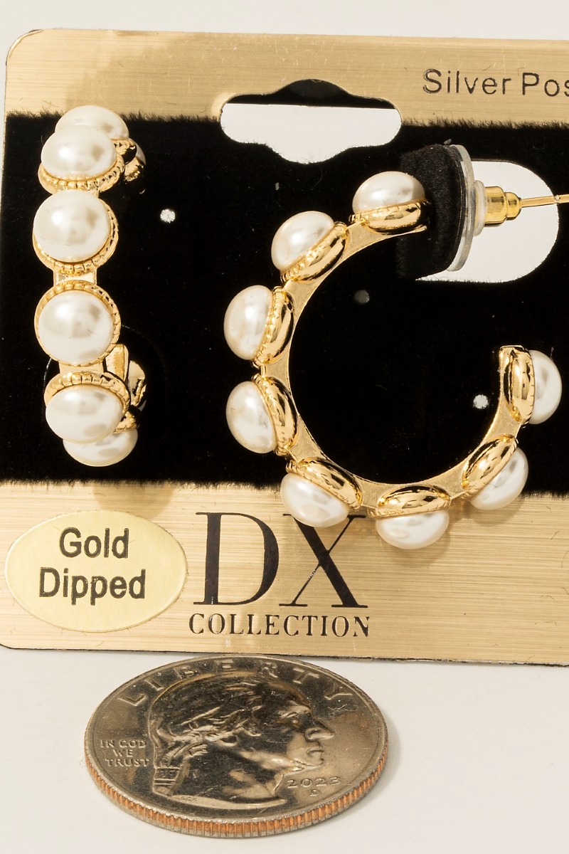 - This pair of hoop earrings showcases a unique gold dipped pearl studded style. Discover the perfect balance of subtlety and flair as this pair of hoop earrings effortlessly completes your look.