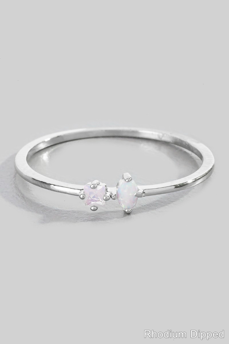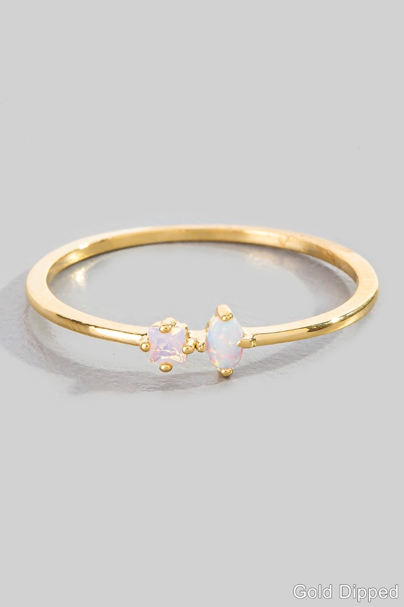 Two Crystal Stone With Leather Band Pave Statement Ring