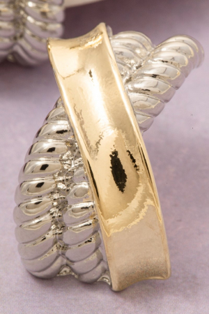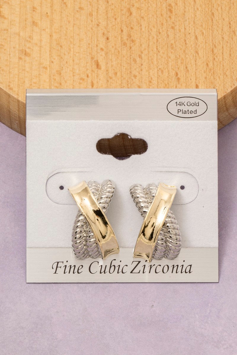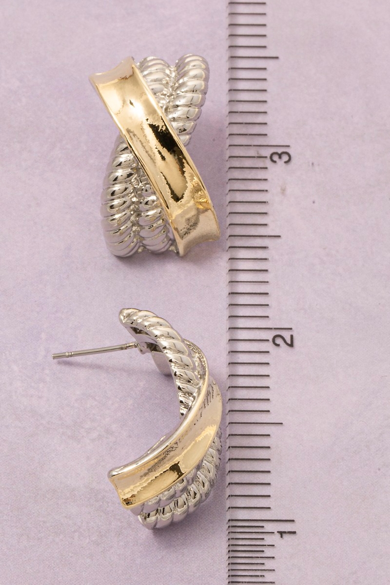 • This pair of earrings adds a modern gold dipped two tone x twist style. Redefine your look effortlessly with this standout, on-trend piece.