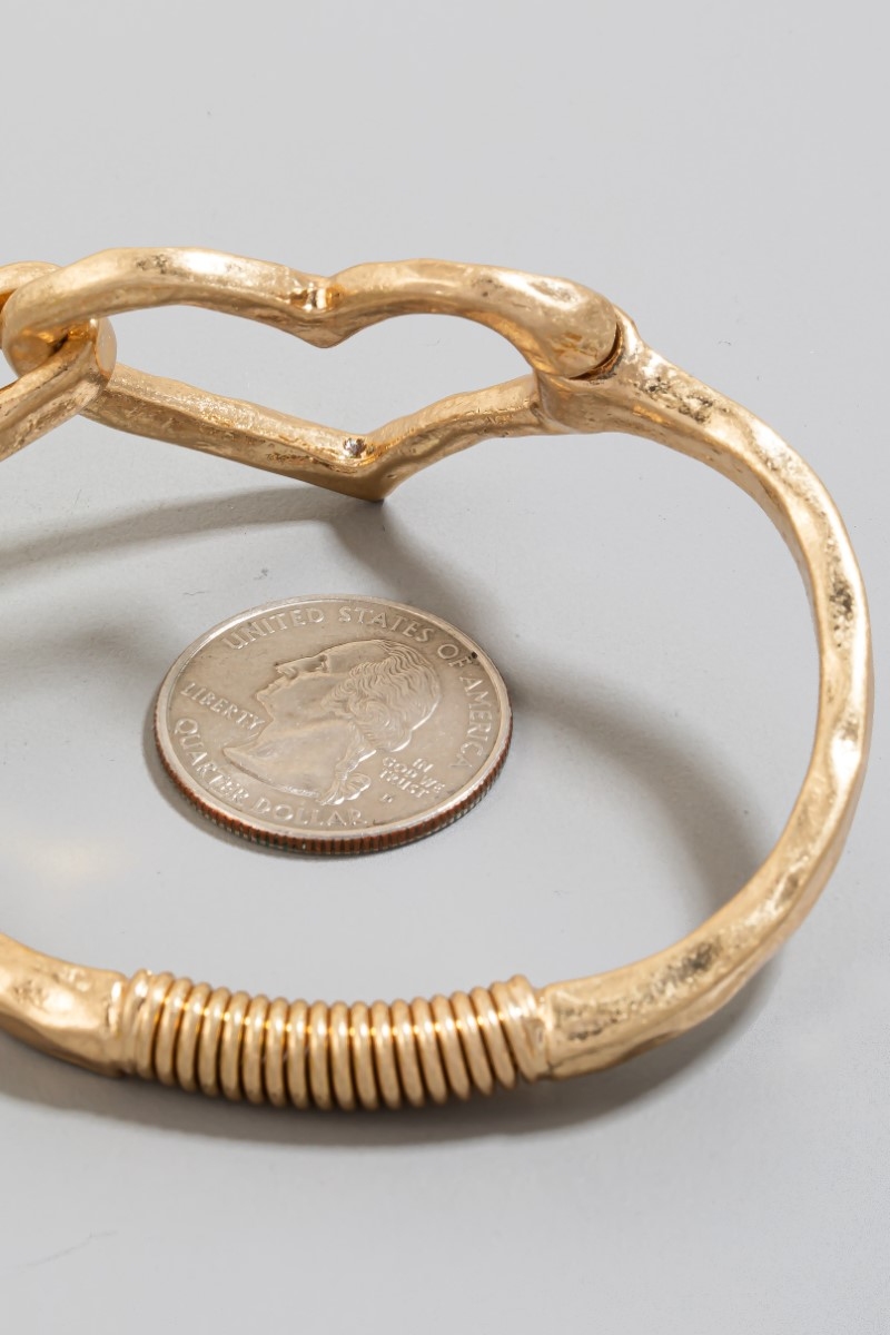 - This bangle bracelet brings a stunning hammered heart coil spring hook style. Experience a burst of creativity in accessorizing as this piece effortlessly sets the tone for your unique style.