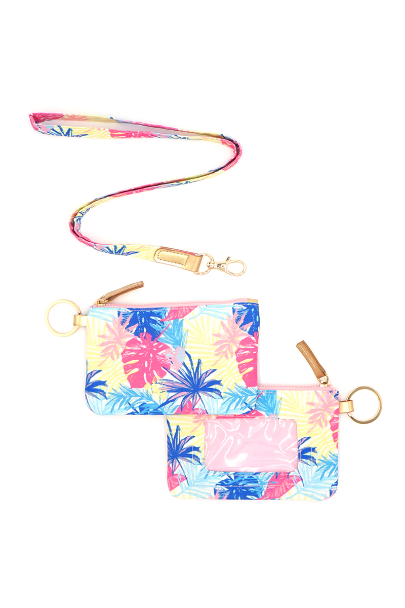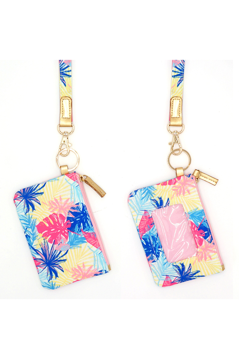 - This wallet adds a modern hand drawn colorful tropical leaves id & detachable lanyard bag style. Immerse yourself in fashion finesse with this statement wallet.