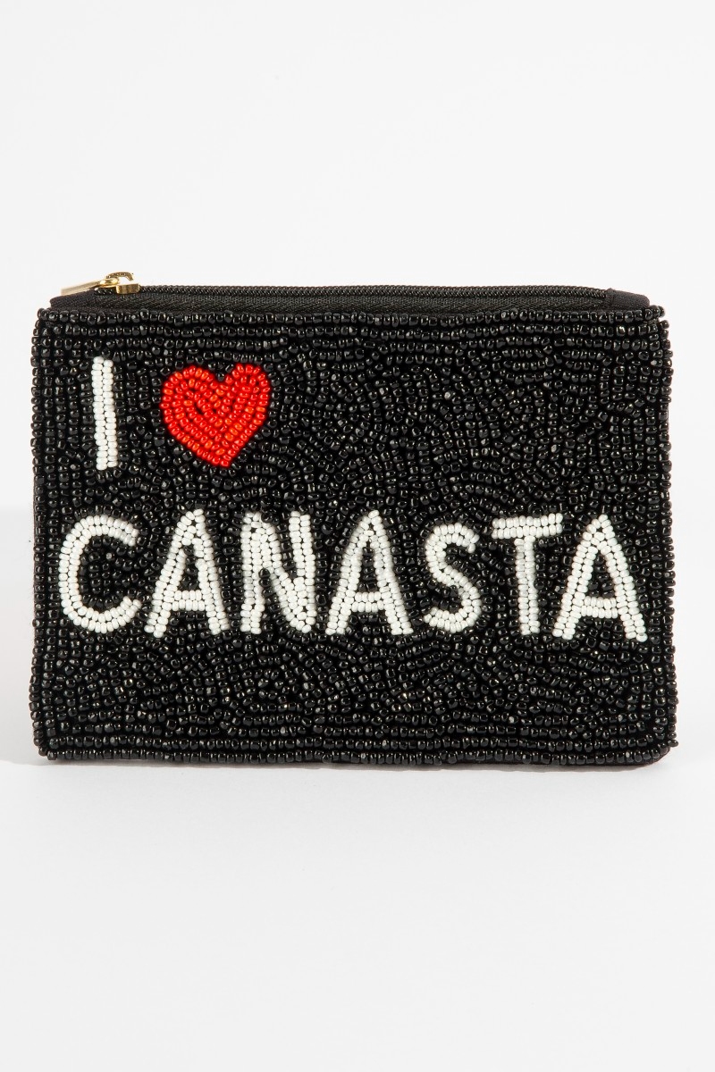 • This coin purse showcases a unique i love canasta beaded style. Discover the perfect balance of functionality and fashion.